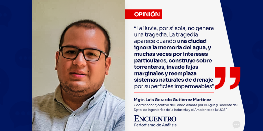 Mgtr. Luis Gerardo Gutiérrez Martínez Coordinador ejecutivo del Fondo Alianza por el Agua Docente del Departamento de Ingenierías de la Industria y el Ambiente de la Universidad Católica San Pablo Las lluvias intensas que vienen afectando a Arequipa deben llevarnos a cuestionar si estamos realmente frente a un “desastre natural” inevitable o ante las consecuencias […]