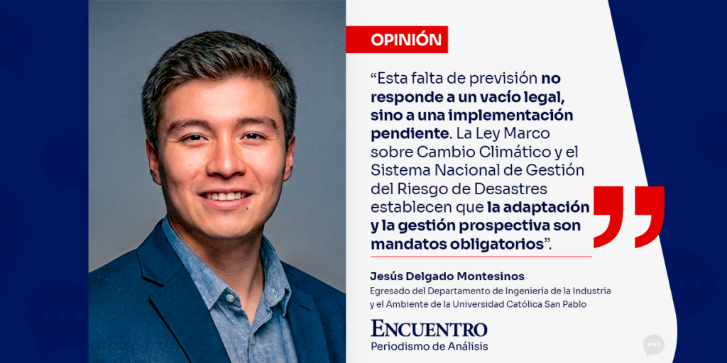 Jesús Delgado Montesinos Egresado del Departamento de Ingeniería de la Industria y el Ambiente de la Universidad Católica San Pablo Cada año, el Perú enfrenta el impacto de las lluvias y los huaicos con una sorpresa que parece haberse vuelto tradición. Sin embargo, anticipar los desastres siempre cuesta menos que reconstruir después. Aunque el Servicio […]