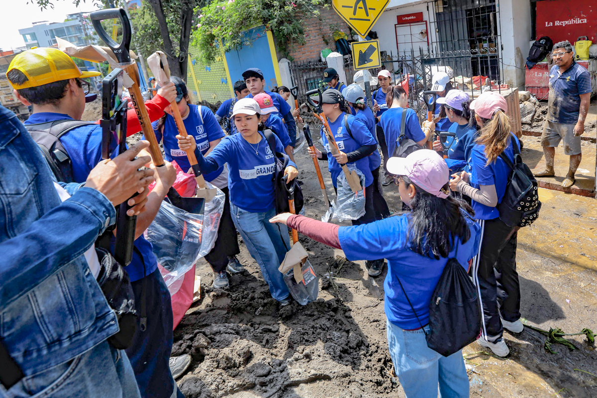 Integrantes de la San Pablo participan en campañas de limpieza en zonas afectadas por los huaycos.
